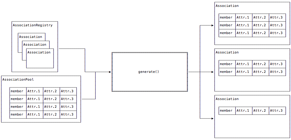 As introduced in the Association Overview, the figure above shows all the major players used in generating associations. Meanwhile, the figure below is the overview but using the class names involved.